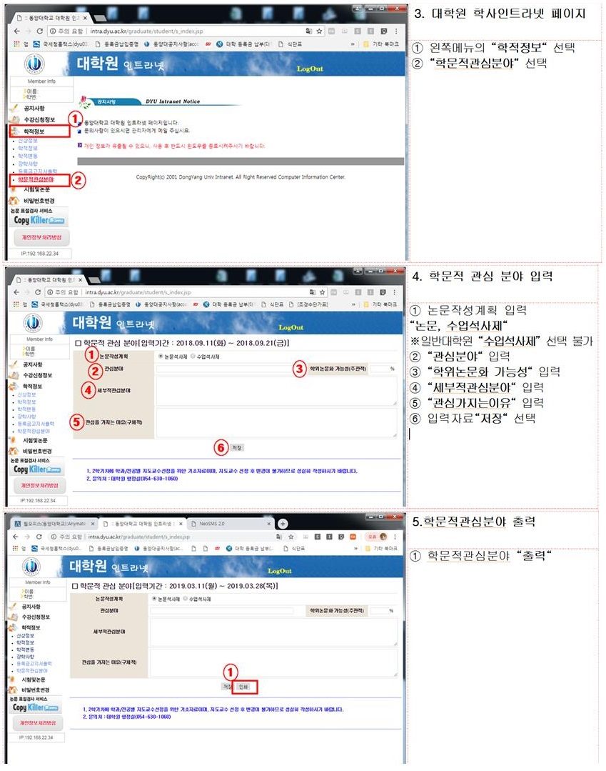학문적관심분야 입력 안내(지도교수 선정 중요자료)